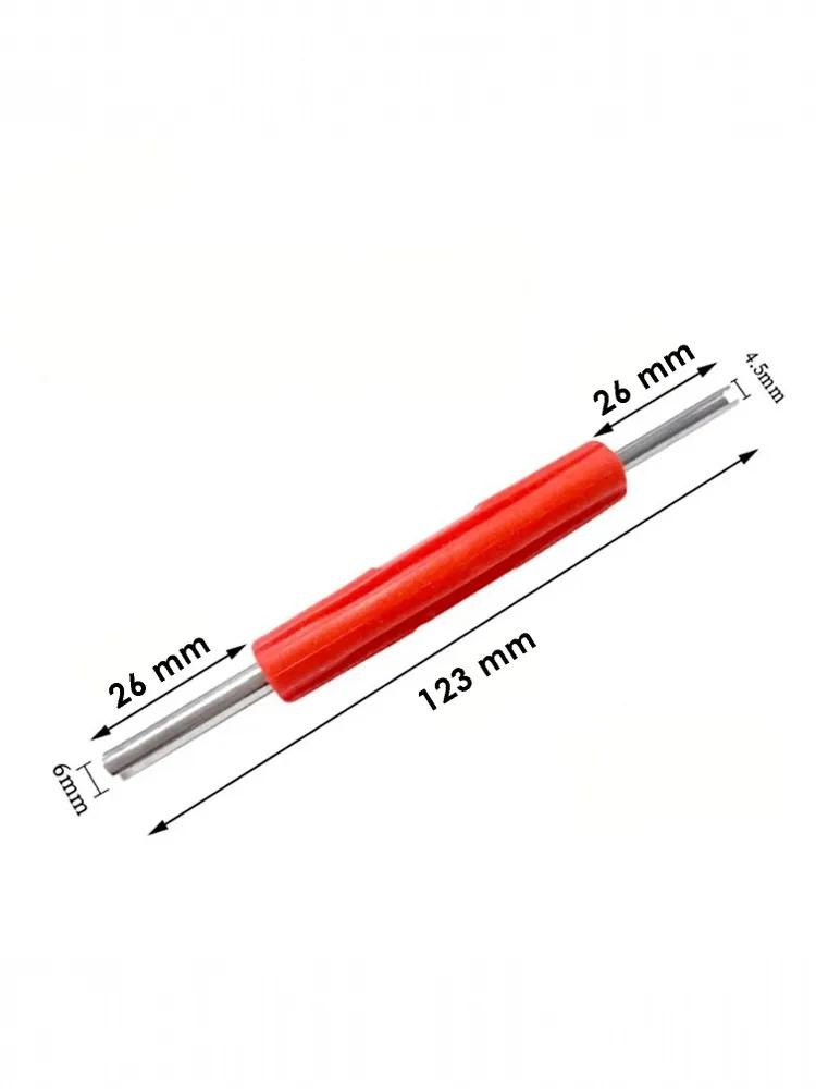 Ключ ниппельный отвертка для замены золотника - это незаменимый инструмент при работе с заменой золотников . Экстрактор золотников (ниппелей) заправочного порта двусторонний. Подходит для всех типов золотников, используемых в автомобильных кондиционерах