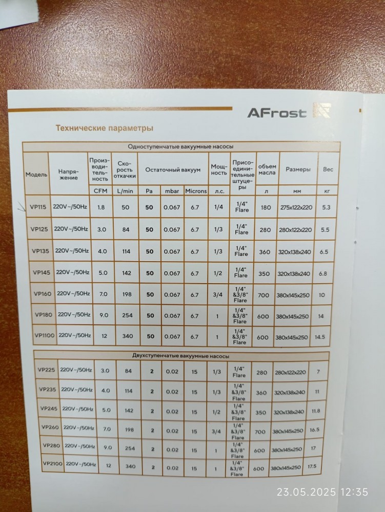 Насос вакуумный AF-VР125 (1ступ. 70л/мин) AFrost