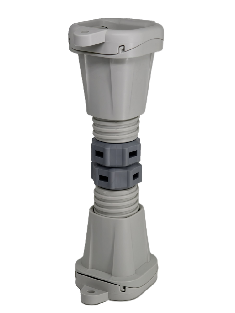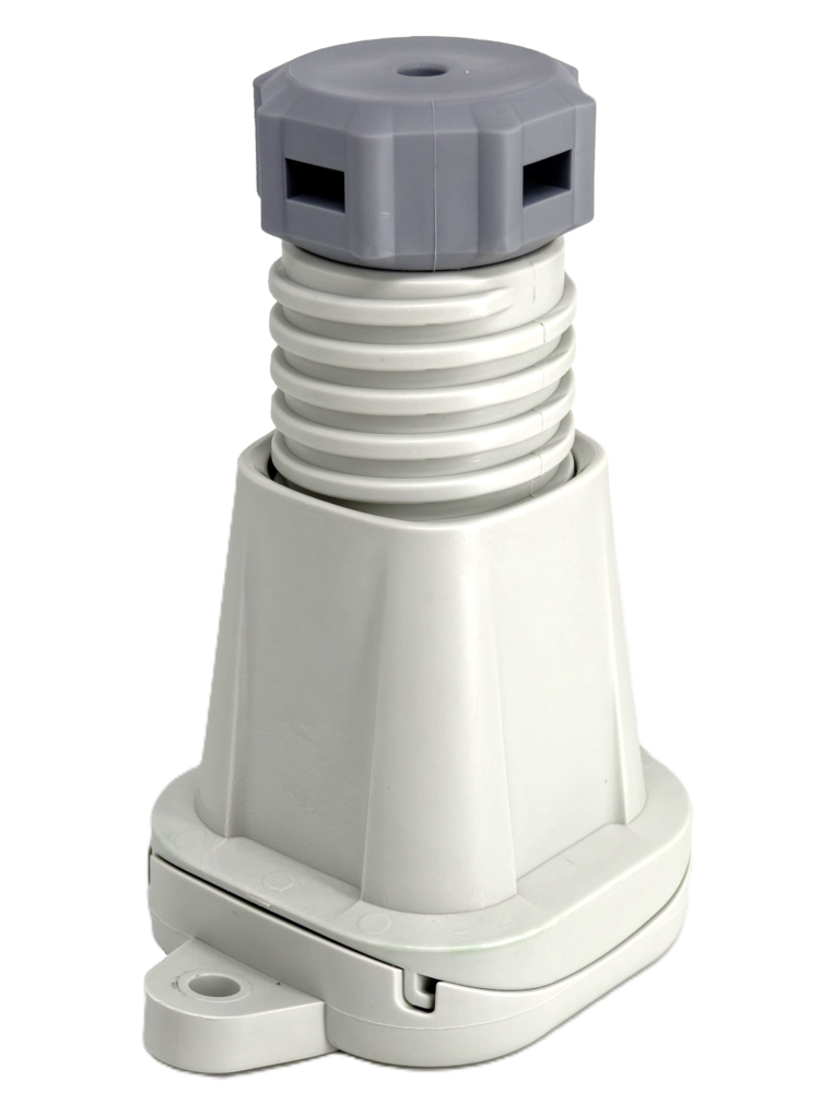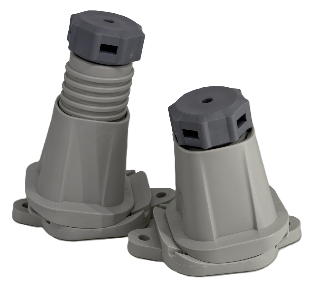 Опоры изготовлены из высокопрочного конструкционного пластика, устойчивого к ультрафиолету, влаге и перепадам температур. Встроенный демпфер из виброизоляционного полимера снижает передачу вибраций на основание.