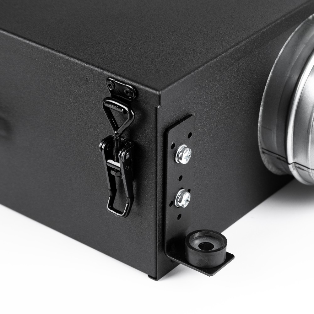 Благодаря фиксации вентилятора на специальных демпферах устройство не создает шума и вибрации. Дополнительное шумопоглощение достигается за счет утепленного и шумоизолированного корпуса