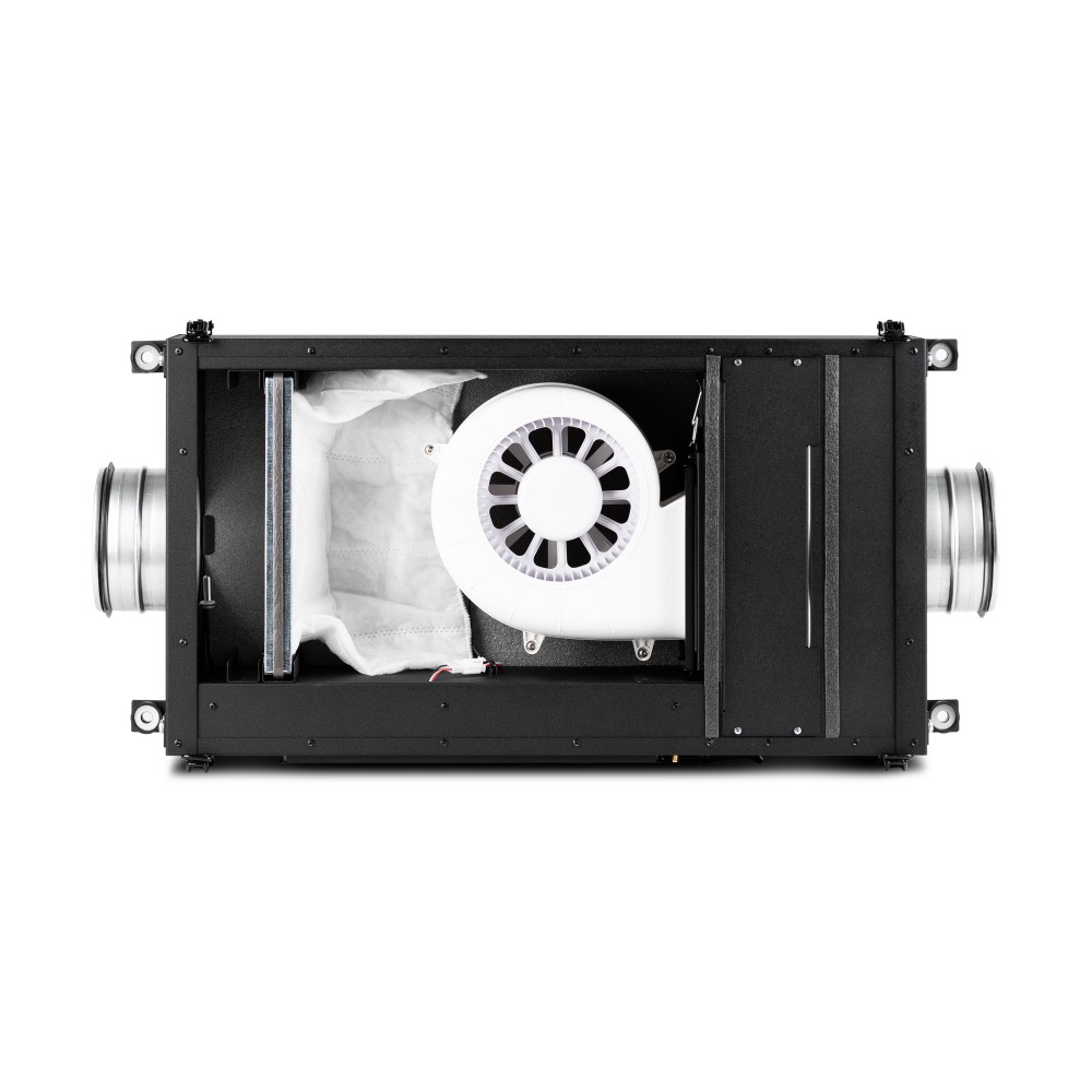 Самый тонкий прибор на рынке приточных установок 649 х 359 х 141, вес 11,1 кг, что позволяет монтировать прибор, как горизонтально, так и вертикально, в отапливаемых и неотапливаемых помещениях. Все продумано для экономии пространства и легкости эксплуатации.